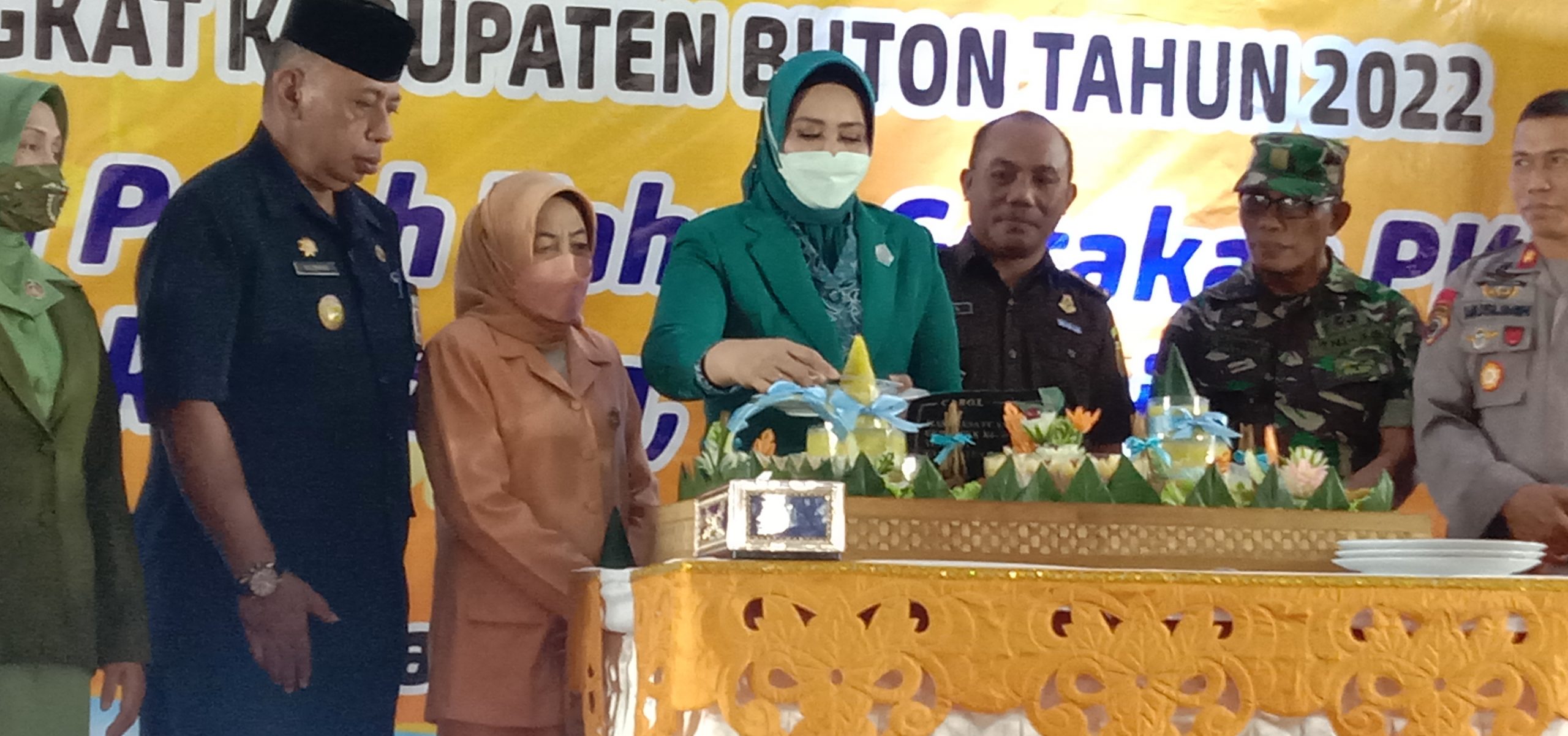 Kegiatan HKG PKK tersebut dirangkaikan dengan peringatan hari ulang tahun istri Bupati Buton, Delya Montolalu La Bakry, yang ke-50.