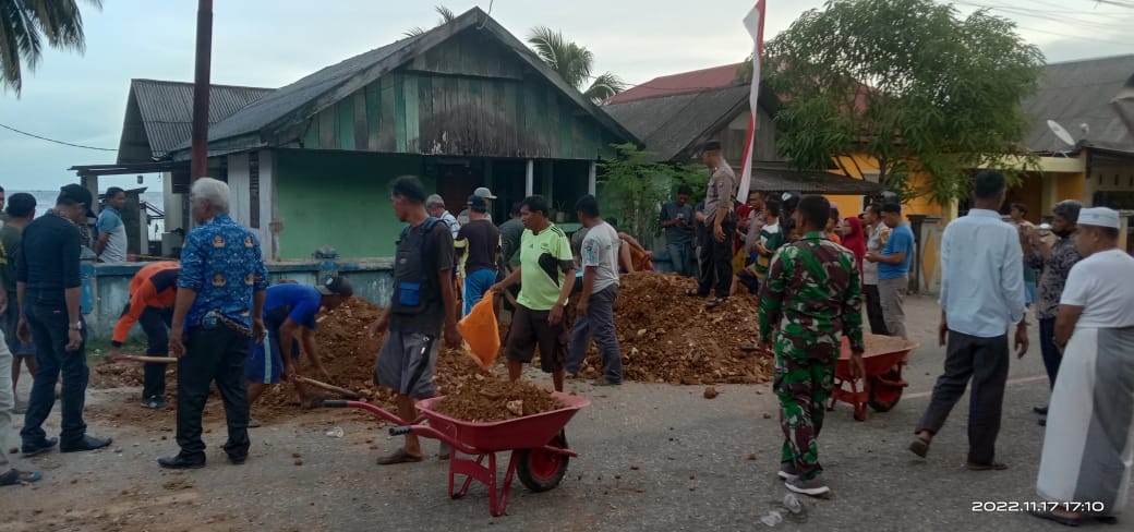 Gerak cepat oleh petugas gabungan TNI-POLRI, BPBD serta warga melakukan penimbunan lubang akibat longsor tersebut.