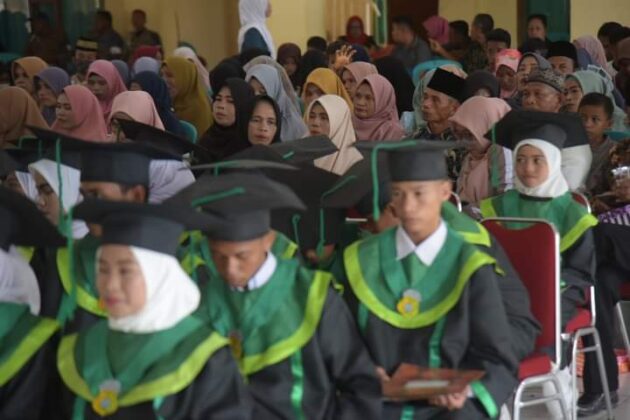 Wisuda yang dipimpin langsung Pj Bupati Buton, Drs. Basiran, M.Si didampingi Sekda Buton, Asnawi Jumaluddin, S.Pd., M.Si, Asisten Administrasi Tata Pemerintahan dan Kesra Setda Buton, Alimani, S.Sos., M.Si, Kepala Kantor Kementerian Agama Kabupaten Buton, H. Mansur, S.Pd., MA dilaksanakan di Gedung Wakaka, Pasarwajo, Jumat (10/2/2023).