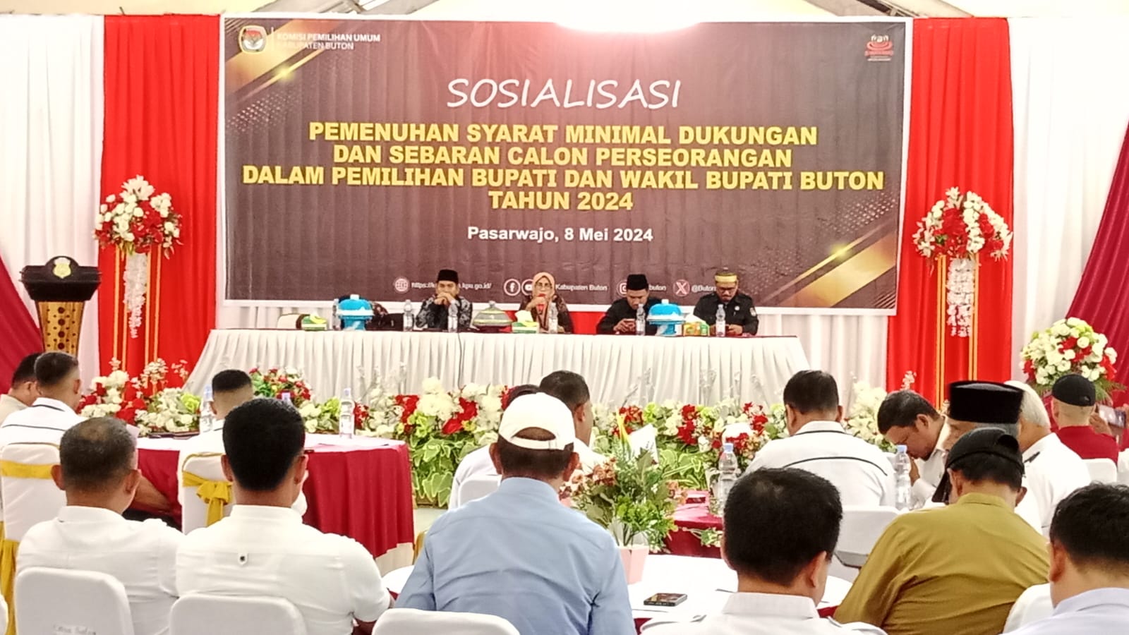 Dihadiri antara antara lain, Perwakilan Polres Buton, Ketua Bawaslu Buton Maman, Perwakilan Capil, Balon Bupati Buton H. Rasyid Mangura, Para Camat dan Kepala Desa/Lurah se-Kabupaten Buton.